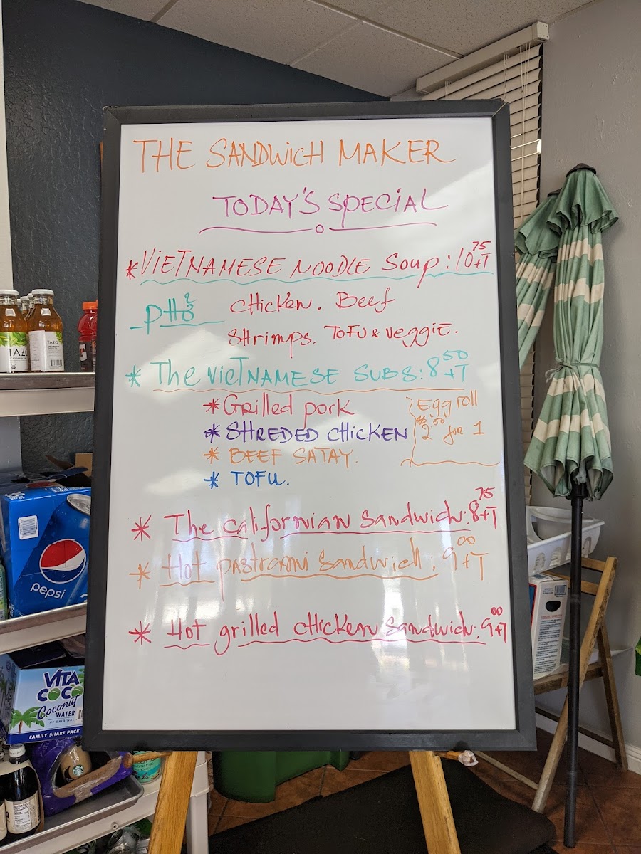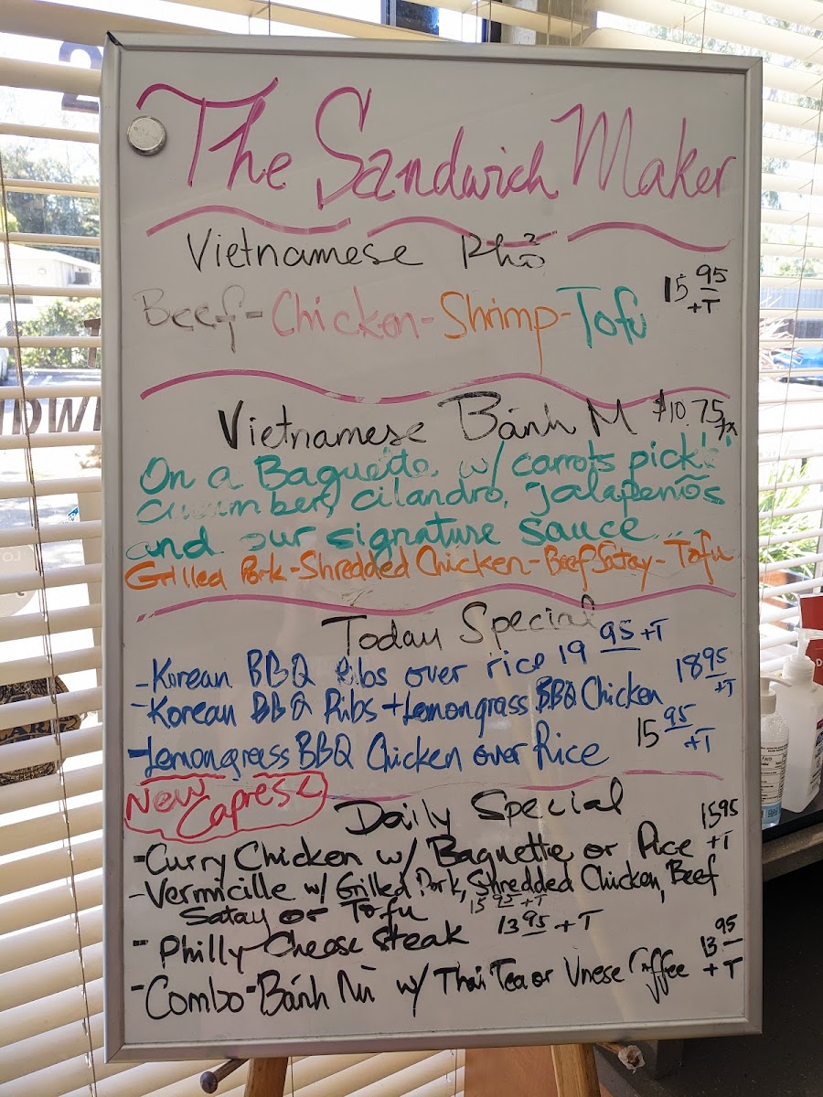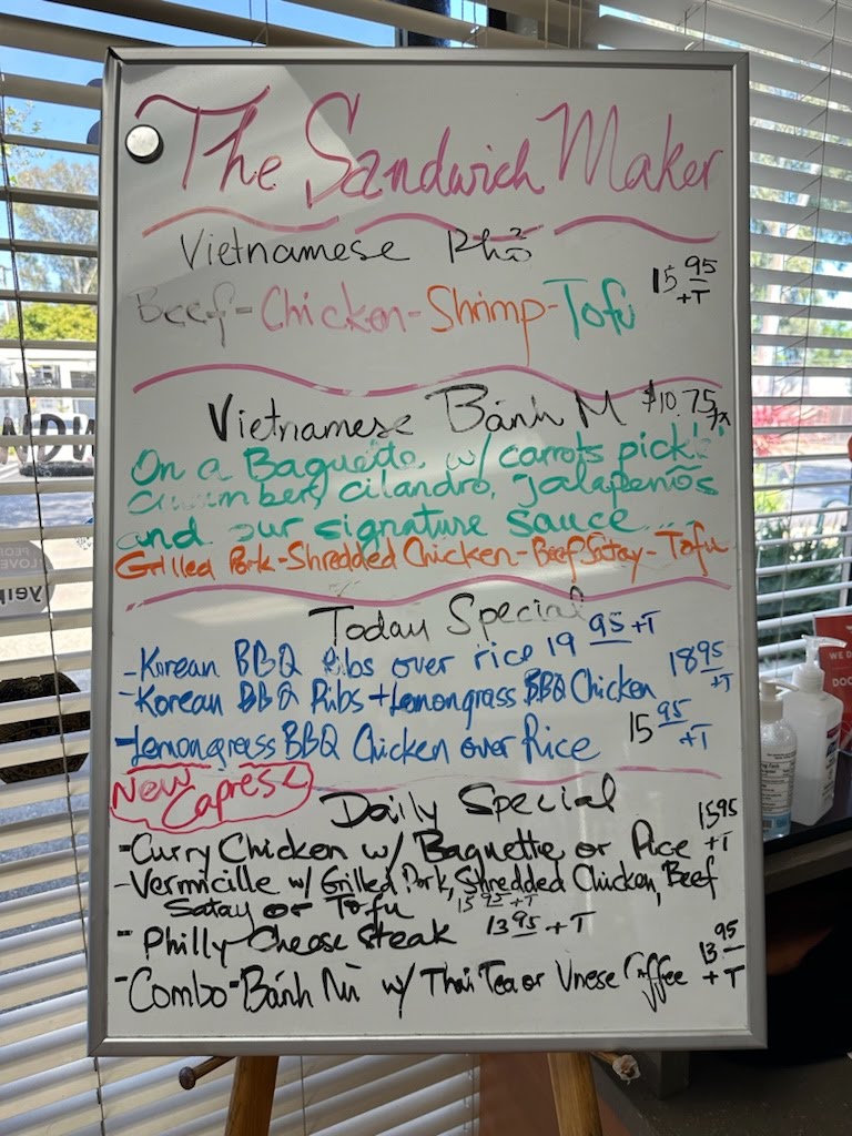 As a final takeaway from my visit, the menu at Sandwich Maker at 987 University Ave #38 offers a concise yet satisfying selection that highlights comfort, variety, and casual dining appeal. The heart of the menu clearly lies in its signature sandwiches, where options like The Monterey, The BBQ Beef, and The Hot Pastrami stand out as flavorful, filling choices that cater to both classic and bold tastes. Beyond sandwiches, the inclusion of Vermicelli With Grill Pork, Chicken Or Beef adds a welcome twist, giving diners a lighter, Asian-inspired alternative that balances the menu nicely, while Salad options help round things out for those seeking something fresh. To complement the food, the drinks selection is straightforward and practical, featuring popular choices such as Pure Leaf, Snapped Tea, Thai Tea, Bottle Of Water, and Arizona Green Tea, ensuring there’s something refreshing for everyone. On the side, the chips selection-Jalapeno, Sea Salt, Sea Salt & Vinegar, Honey BBQ, and Potato-adds crunch and variety, making it easy to customize a complete meal. Overall, the menu may not be overly extensive, but it feels thoughtfully put together, focusing on reliable favorites, recognizable flavors, and easy pairings that make Sandwich Maker a solid choice for a quick, satisfying bite.